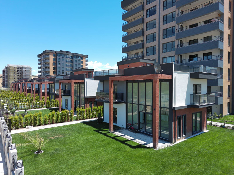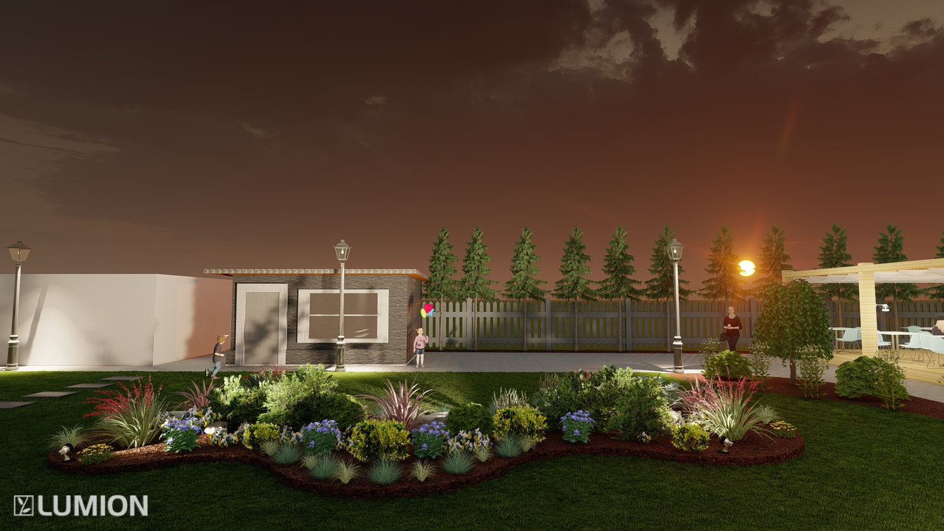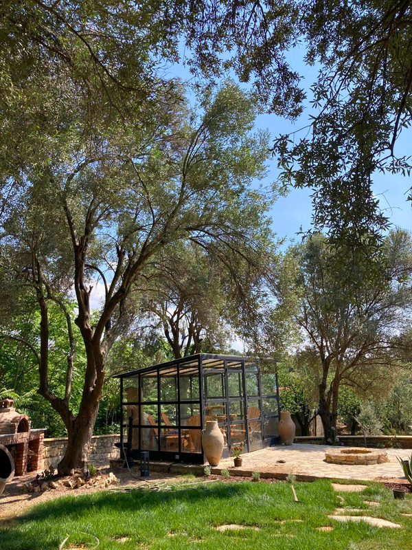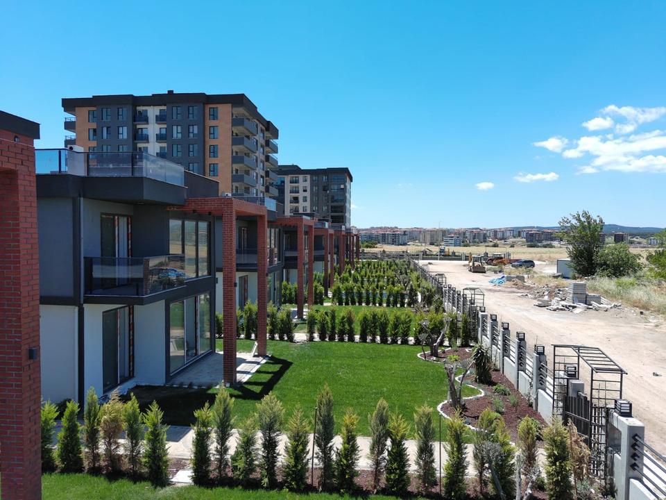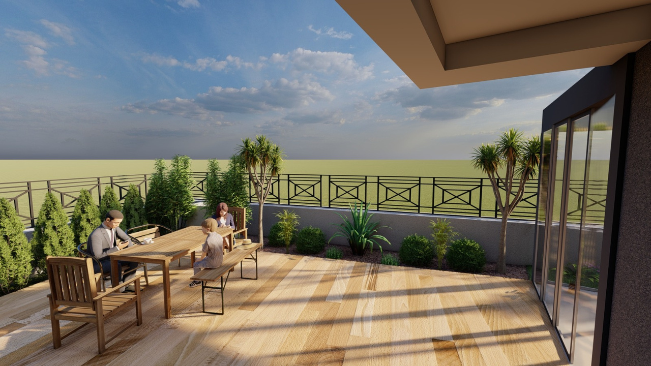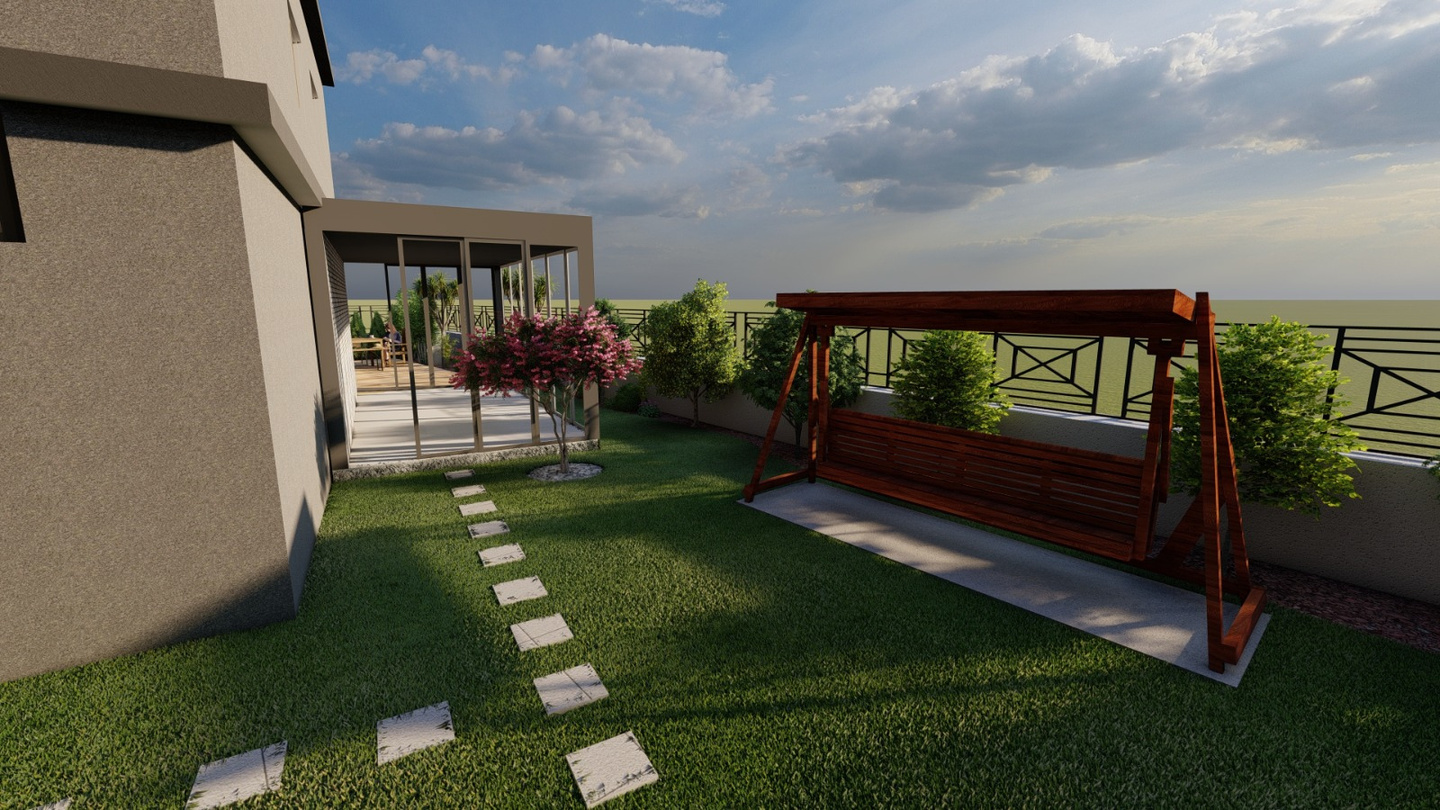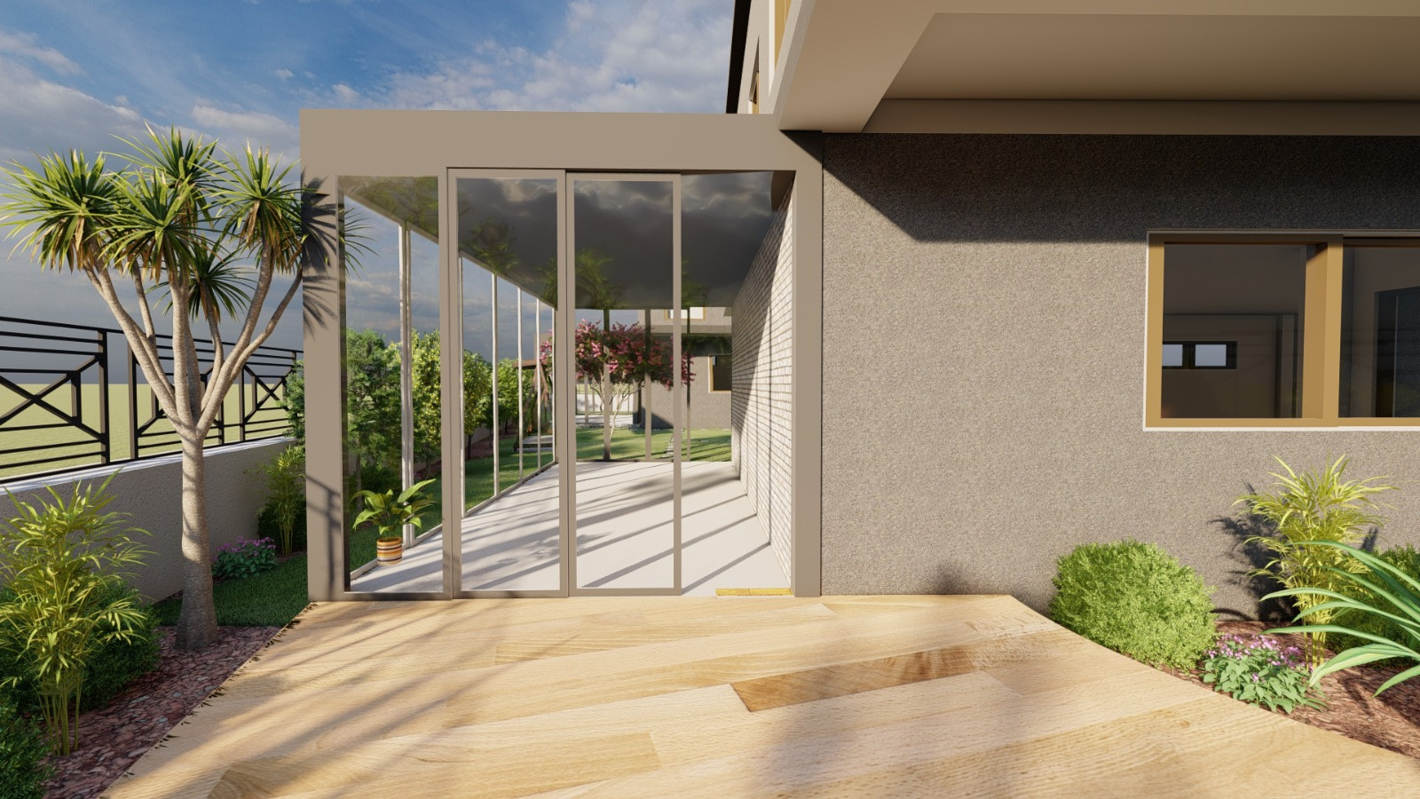 Kış bahçesi önünde bir veranda alanı oluşturulmuştur. Kullanıcıların açık havada keyifli anlar yaşamaları için özel olarak tasarlanmıştır. Estetik değeri yüksek bitki seçimleriyle bahçenin görsel değeri artırılmıştır. Doğayla bütünleşen ve her mevsim yeşil bir bahçe tasarımı oluşturulmuştur.