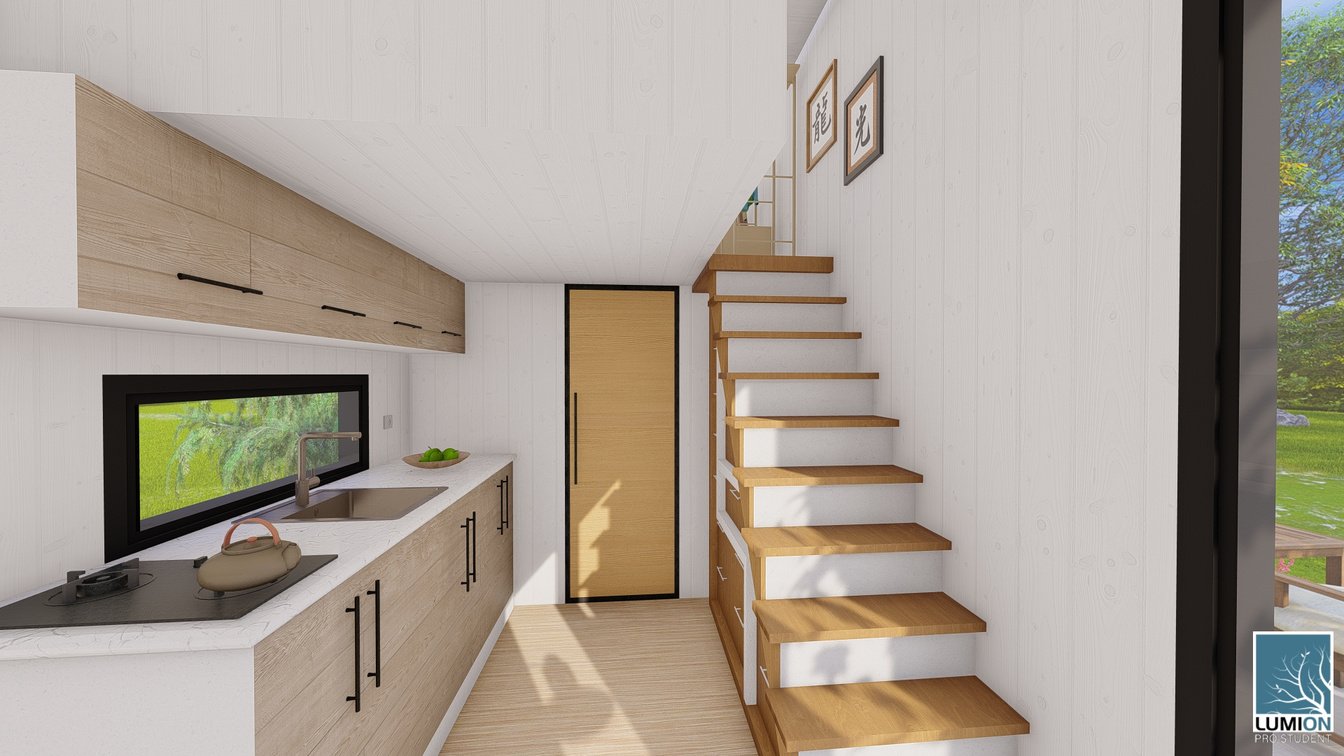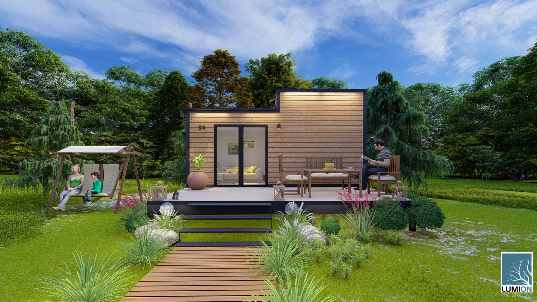 Ön bahçe alanında manzara unsurundan yararlanabilmek adına çakıl zeminden oluşan informal hatlı bir oturma alanı oluşturulmuştur.
