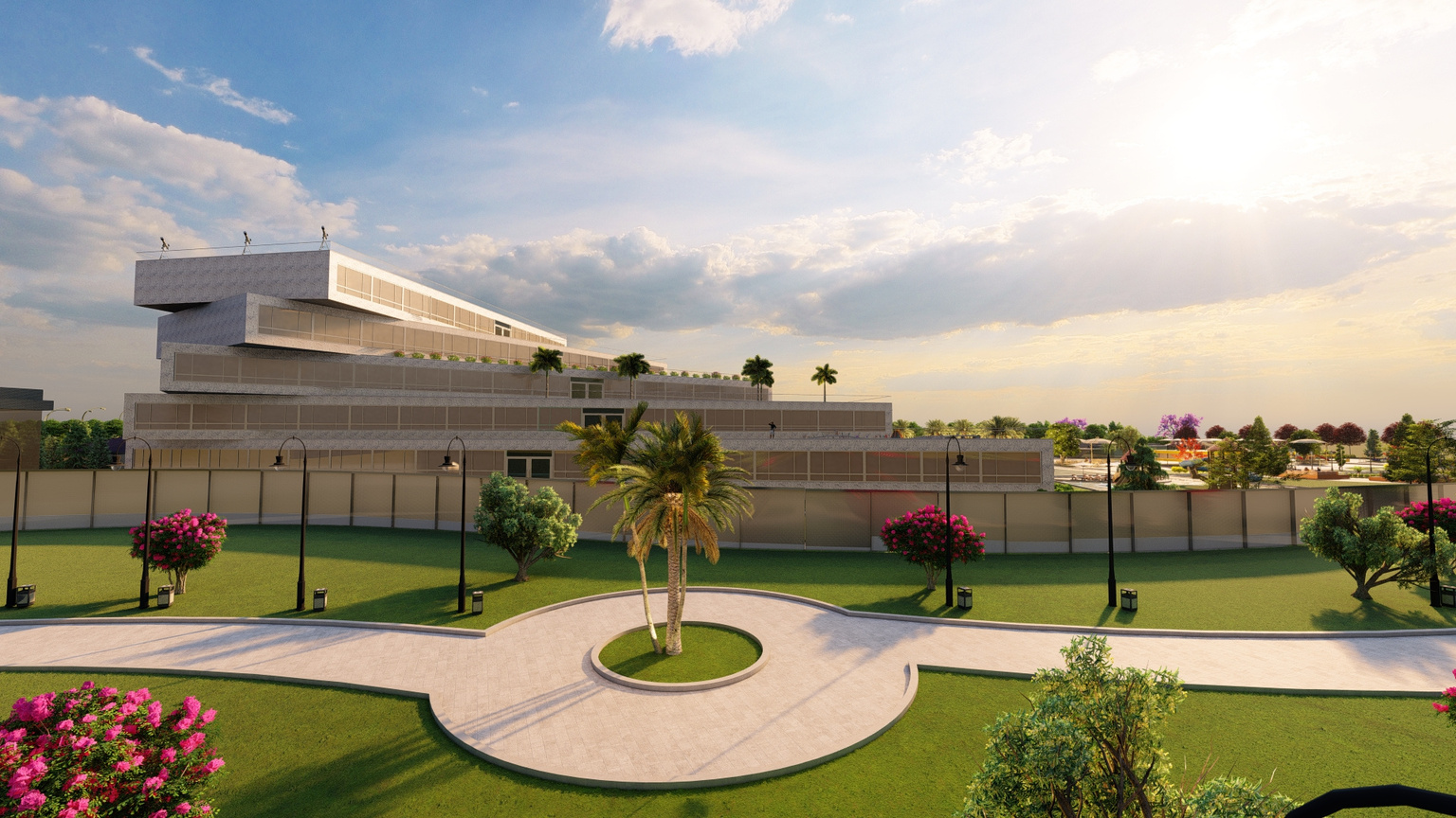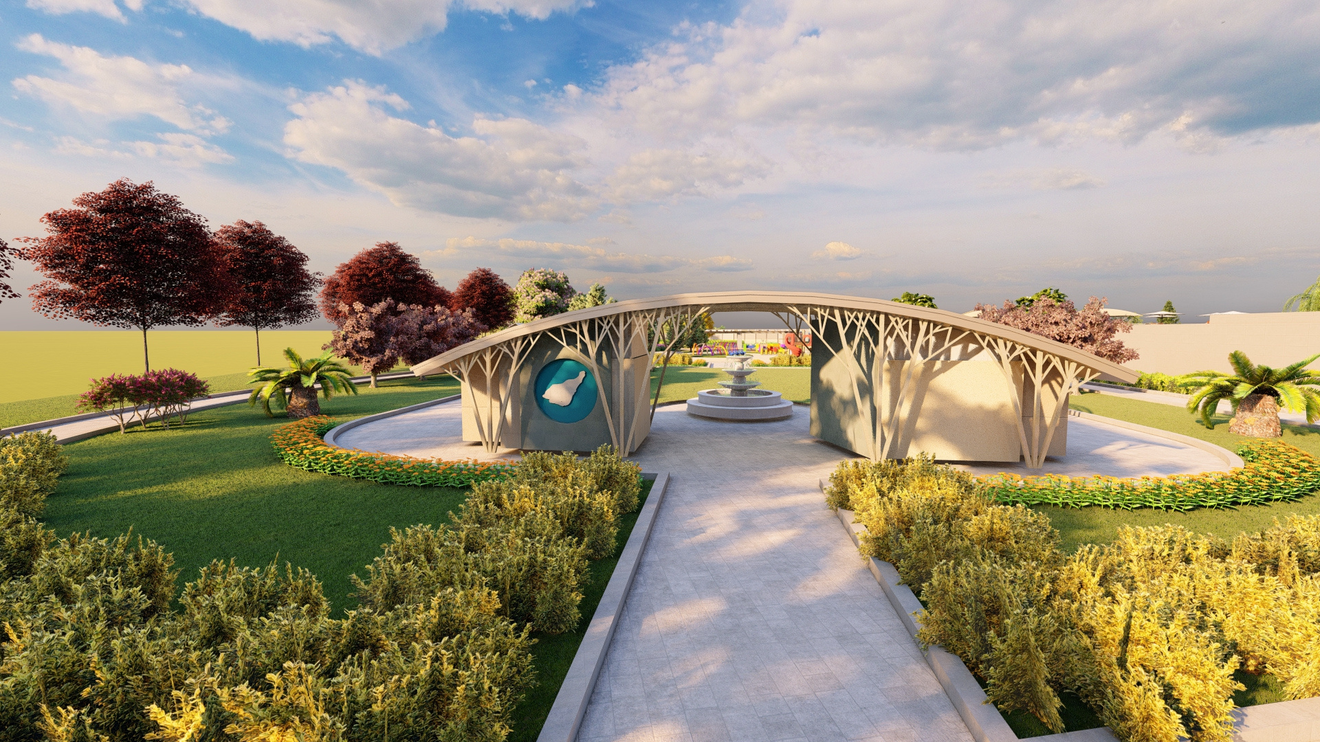 Geniş, çimenlik alan üzerine konumlandırılmış olup bitkisel elemanlar ve peyzaj ögeleri ile çevrelenmiştir.