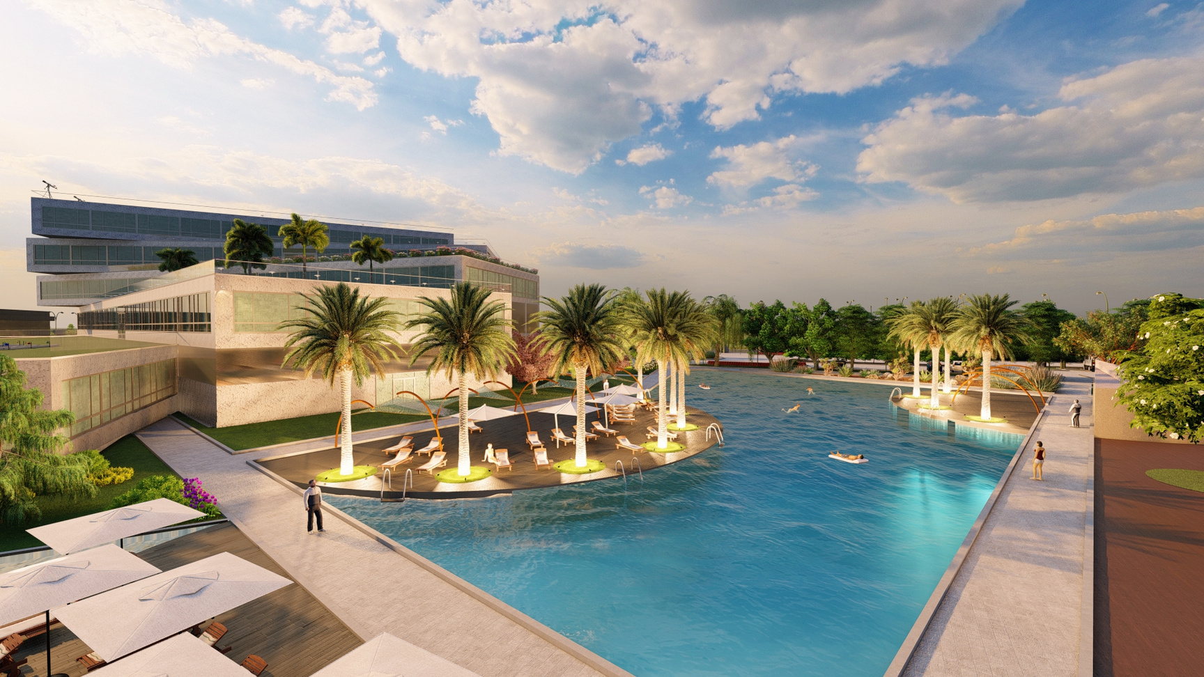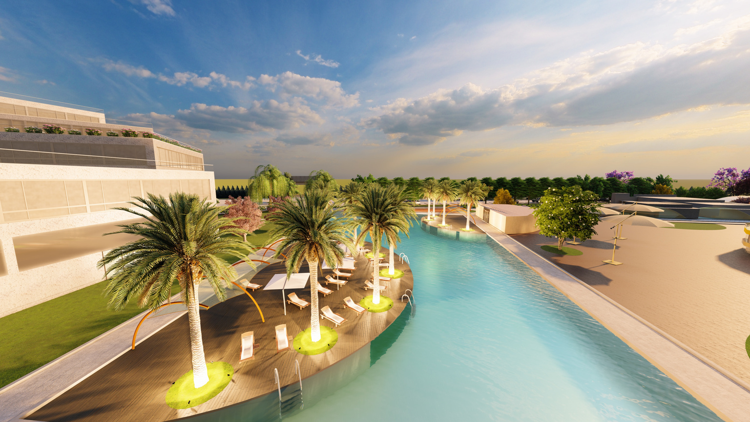 Havuzun dörtgensel şekli, dairesel hatlar kullanılarak tasarlanan güneşlenme terası sayesinde informal bir görünüm kazanmış ve modernleştirilmiştir. Kullanılan bitkisel elemanlar, aydınlatmalar ile desteklenerek görsel olarak güçlü ve keyifli bir mekan oluşturulmuştur.