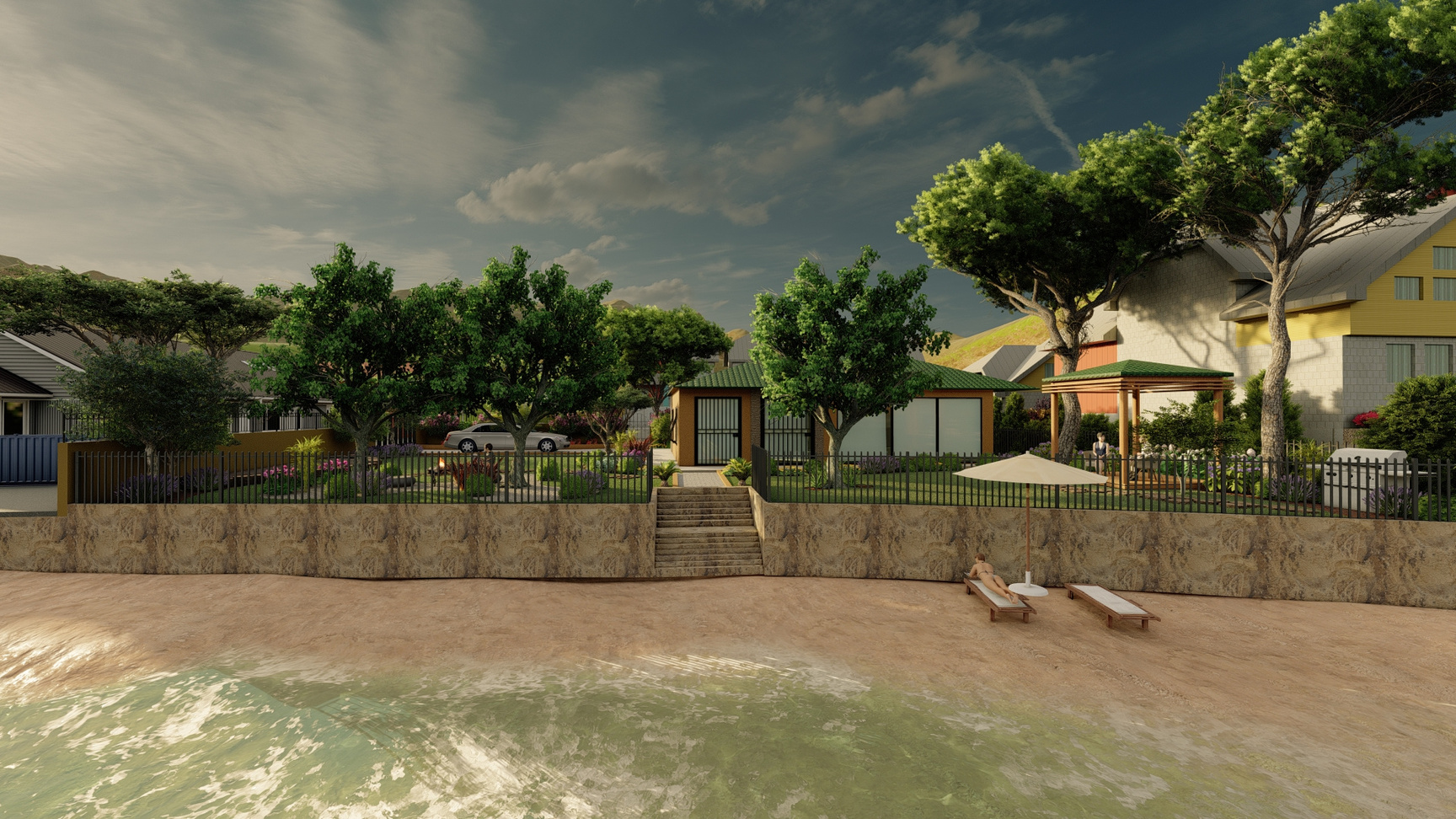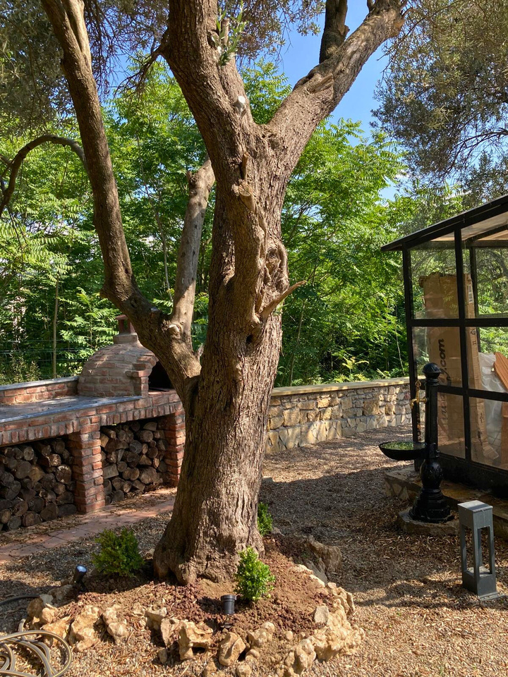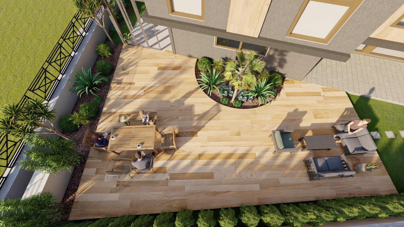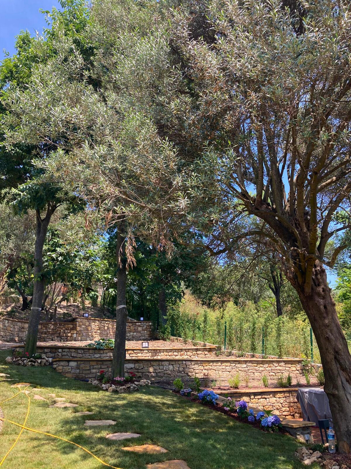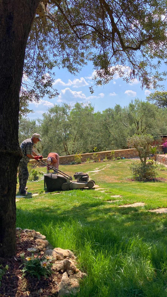 Bahçenin mevcut ağaçları korunarak bitkisel tasarım yapılmıştır. Veranda öndü manzarayı kesmeyecek şekilde kompakt ve estetik görünümlü bitkiler ile çevrelenerek görsel değer arttırılmıştır.