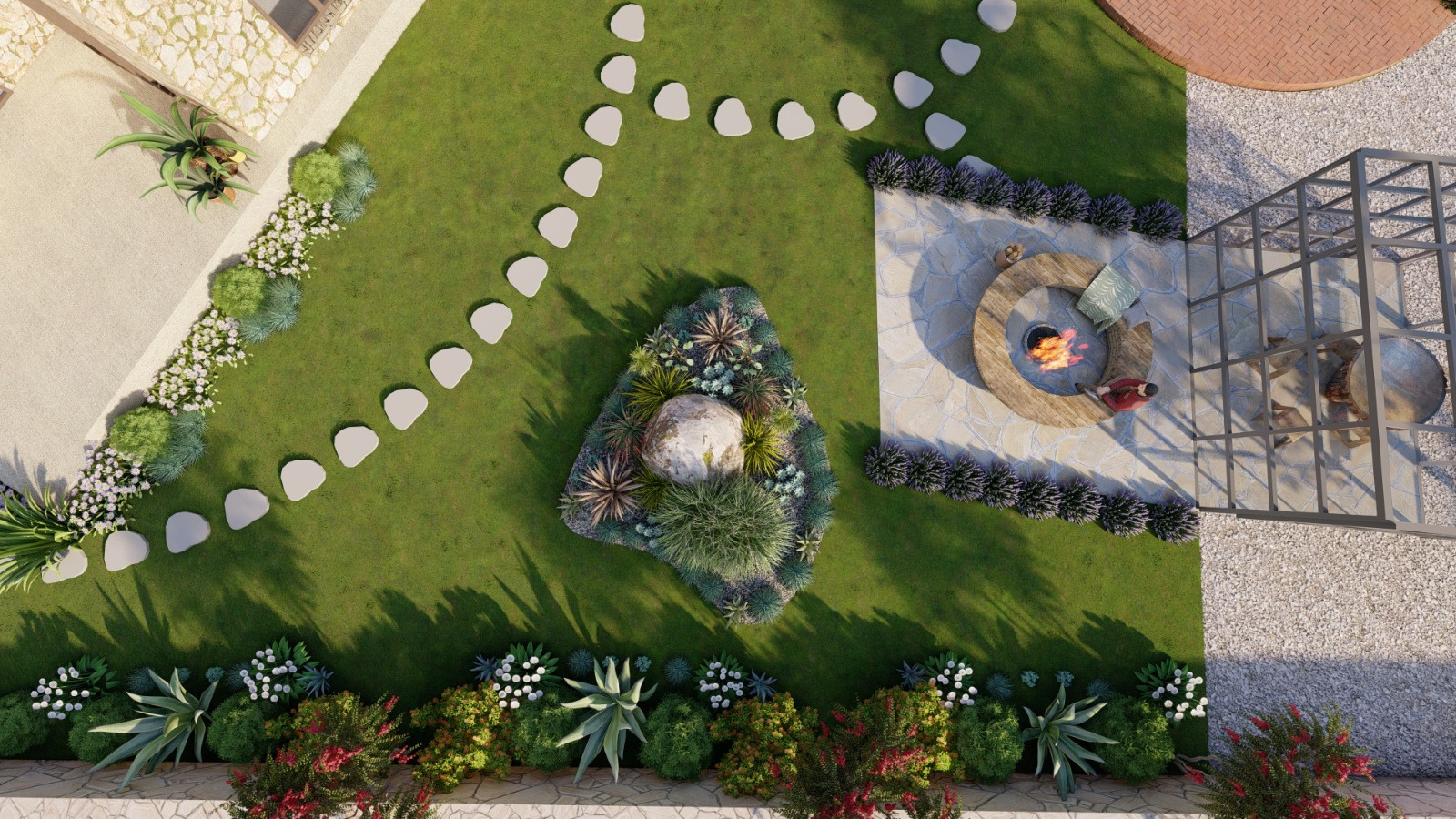 Kaya bahçesi, arazinin mevcut yapısında bulunan kayayı koruyarak tasarlanmıştır. Estetik değeri yüksek ve kaya bahçesi yapısına uygun bitkiler seçilerek doğala yakın bir alan oluşturulması amaçlanmıştır.