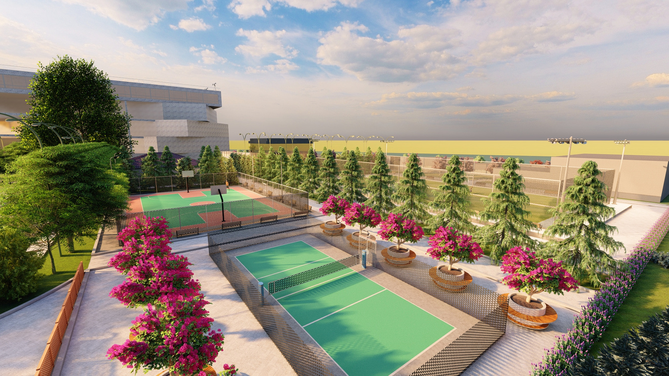 Otel bünyesinde pek çok spor alanına yer verilmiştir. Kullanıcıların spor aktivitelerini rahat ve konforlu bir şekilde gerçekleştirmeleri için güvenli alanlar oluşturulmuştur. Spor alanlarında kullanılan bitkisel elemanlar, gürültü izolasyonu sağlamak amacıyla sık kullanılmış olup, görsel değeri yüksek bitkiler seçilerek alan keyifli ve işlevsel hale getirilmiştir.