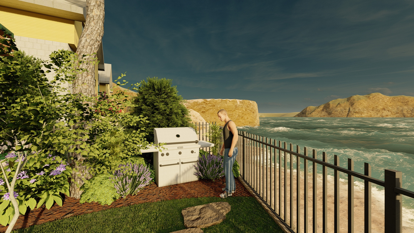 Barbekü ve oturma alanı kullanıcıların keyifli vakit geçirmeleri için izole bir alandır. Alanda çiçek rengi ve kokusuyla etkili olan lavanta ve adaçayı bitkisi kullanılmıştır.